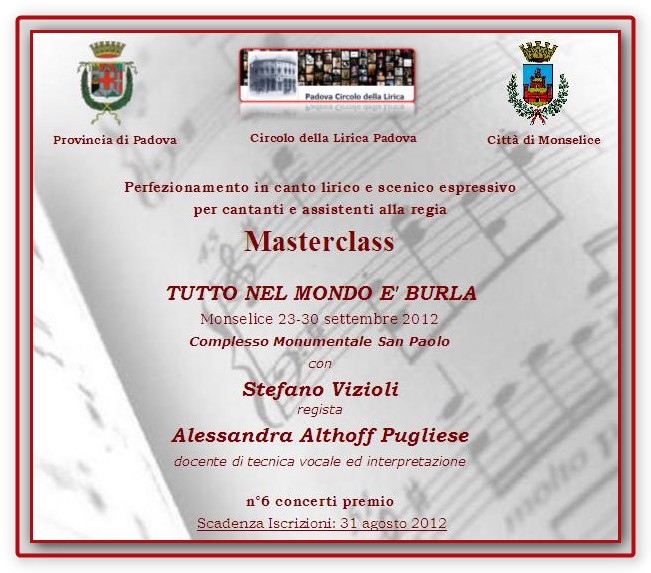 Programma da settembre 2012 a luglio 2013 La Stagione Concertistica si aprirà a settembre 2012 e si concluderà a giugno 2013 con un importante Gran Galà per festeggiare i 30 anni di attività del Circolo. Nel calendario sono previsti, come da tradizione, concerti con cadenza mensile, collaborazioni con i Conservatori di Padova, Verona e Castelfranco…