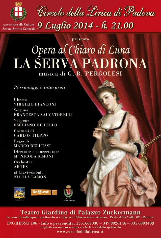 Si comunica che viste le condizioni avverse del tempo, la rappresentazione de “La serva padrona” si svolgerà a Palazzo Zacco Armeni, in Prato della Valle, n. 82 Per info telefonare a Simonetta Flaùto Valveri 349 802 6146 – Arturo Pimpinato 335 1667038
