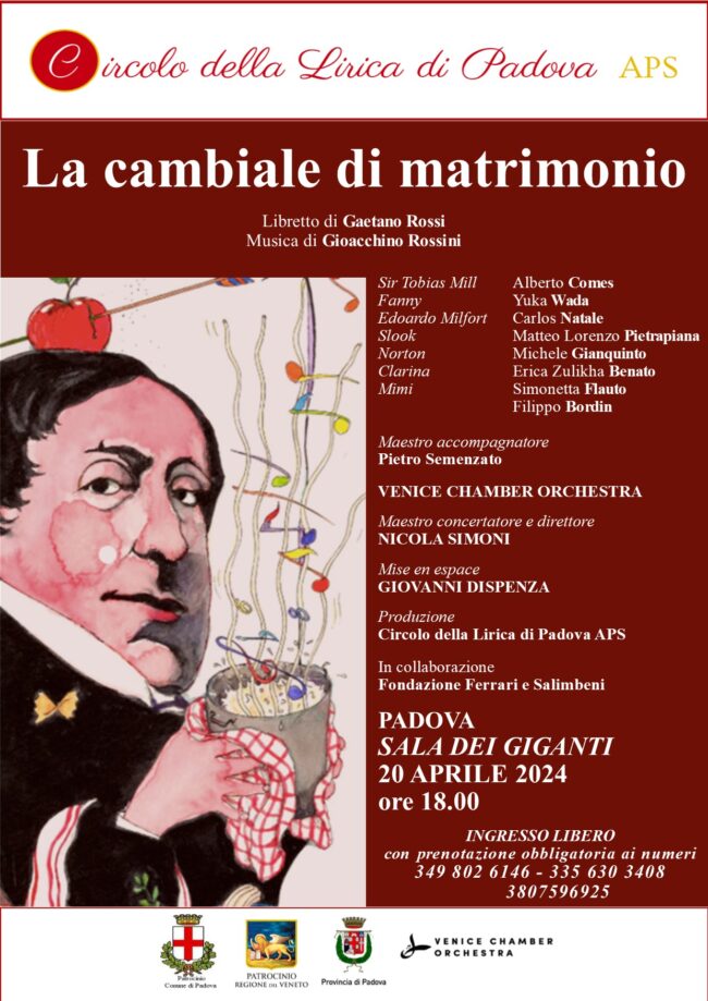 𝐋𝐀 π‚π€πŒππˆπ€π‹π„ πƒπˆ πŒπ€π“π‘πˆπŒπŽππˆπŽ 𝐝𝐒 𝐆. 𝐑𝐨𝐬𝐬𝐒𝐧𝐒 𝐚 𝐏𝐚𝐝𝐨𝐯𝐚 𝐒𝐀𝐋𝐀 πƒπ„πˆ π†πˆπ†π€ππ“πˆ – 𝐏𝐚𝐝𝐨𝐯𝐚 π¬πšπ›πšπ­π¨ 𝟐𝟎 𝐚𝐩𝐫𝐒π₯𝐞 𝐨𝐫𝐞 πŸπŸ–.𝟎𝟎 πˆππ†π‘π„π’π’πŽ π‹πˆππ„π‘πŽ Il Circolo della Lirica di Padova porta in scenaΒ La Cambiale di Matrimonio” di Rossini.Β Β Nel salotto,Β semplicemente elegante di casa Mill la trama si snoda tra gustose arie e concertati in un’atmosfera di allegria e spensieratezza…