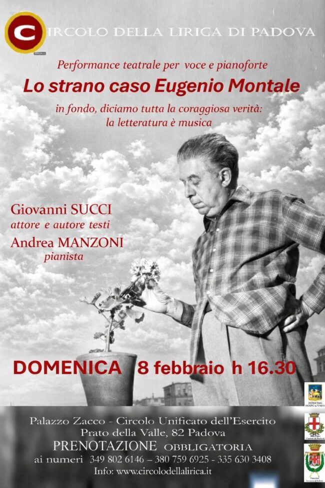 8 febbraio: Lo strano caso di Eugenio Montale – performance teatrale per voce e pianoforte