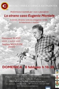 La voce di Giovanni Succi indaga, evoca e scava, guidando lo spettatore dentro le pieghe segrete della parola poetica. Il tono resta fedele ai testi e ai contesti, tagliente e ironico come Montale nelle sue interviste. È un’indagine teatrale sulla figura di un poeta schivo, complesso, istrionico, autore di una rivoluzione silenziosa nella lingua italiana. Il pianoforte di Andrea Manzoni non accompagna: costruisce. Modella ambienti sonori, crea tensioni emotive, diventa parte attiva della drammaturgia. Il progetto intreccia parole, musica e memoria: le poesie diventano partiture sonore, i silenzi si trasformano in battute musicali, le voci d’epoca riportano l’autore al centro della scena. Ne nasce un’esperienza immersiva che permette al pubblico di avvicinarsi a Montale da una prospettiva nuova, affiancando alla lettura dei versi il suo universo sonoro.